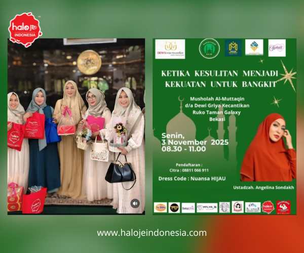 Bekasi, 3 November 2025 – Haloje Indonesia kembali menunjukkan komitmennya dalam mendukung kegiatan keagamaan dan penguatan spiritual masyarakat dengan berpartisipasi dalam acara Taklim bertema “Ketika Kesulitan Menjadi Kekuatan Untuk Bangkit” yang diselenggarakan di Musholla Al Muttaqin, kawasan Galaxy, Kota Bekasi.
